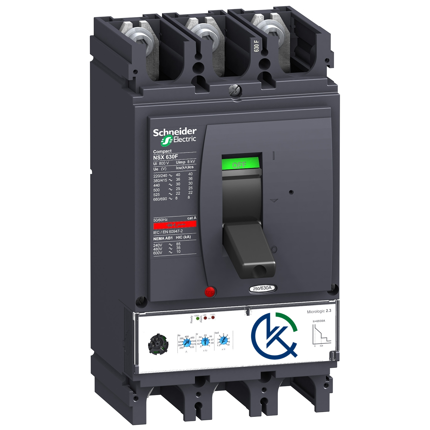 کليد اتوماتیک سه پل 630 آمپر قدرت قطع 36kA اشنایدرالکتریک LV432876
