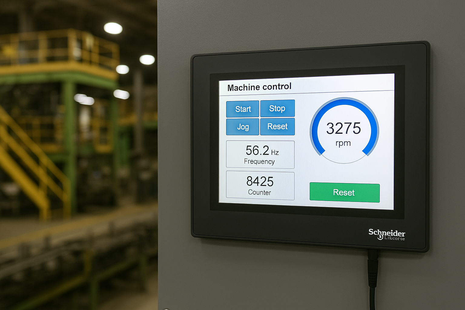 HMI پنجرهای است که از طریق آن اپراتور میتواند با PLC، درایو، سنسورها و سیستمهای صنعتی ارتباط برقرار کند.